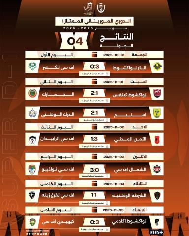 أسفرت نتائج الجولة الرابعة من الدوري الوطني لكرة القدم التي اختتمت مساء اليوم عن صدارة جمركية كما عرفت تحقيق أكاديمية نواكشوط لأول انتصار .