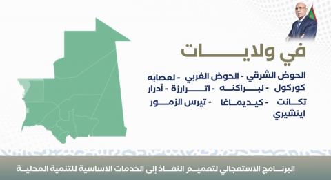وأضاف ولد اجاي في تدوينة له عبر صفحته " الفيسبوك " أن انطلاقة البرنامج متزامنة في 11 ولاية للبرنامج التنموي مشيرا إلى أن 142 شركة منفذة لهذا البرنامج في مرحلته الأولي تتواجد اليوم علي الميدان و تتوزع علي بلديات الولايات المستفيدة (223 بلدية) و ستتدخل في أكثر من 2300 مدينة و قرية يشملها هذا البرنامج.