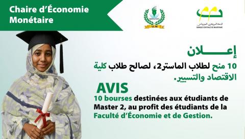 وأكد البنك المركزي أن الشراكة بينه وبين كلية الاقتصاد والتسيير بجامعة نواكشوط أثمرت عن فتح باب الترشح ل 10 منح تميز موجهة لطلبة الماستر 2 المسجلين بالكلية.