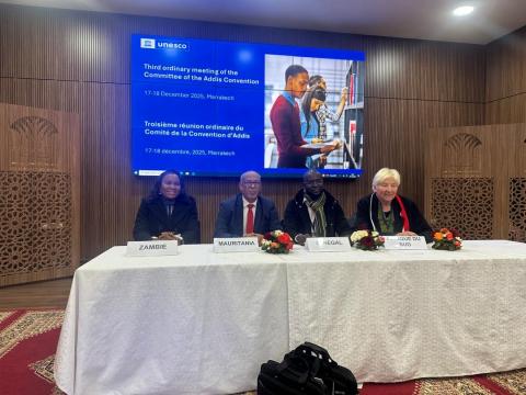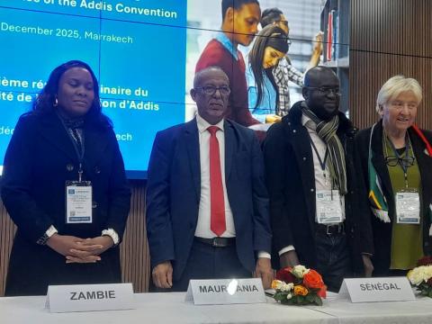 و جاءت تشكيلة المكتب على النحو التالي: السنغال رئيسا، موريتانيا نائبا أول، جنوب إفريقيا نائبا ثانيا، زامبيا مقررا .