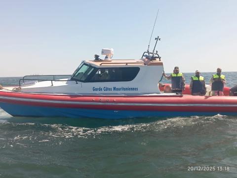 وقالت المصادر أنه بعد تلقي البلاغ سارعت فرقُ خفر السواحل الموريتانية إلى مباشرة عمليات البحث والإنقاذ في موقع الحادث حيث جرى تسخير زوارق تدخل سريعة وغوّاصين مختصين وأسفرت عن تحديد موقع الزورق الغارق، وانتشال محرّكه، إضافة إلى بعض الأغراض الشخصية التي كانت محفوظة داخل حاوية مغلقة.
