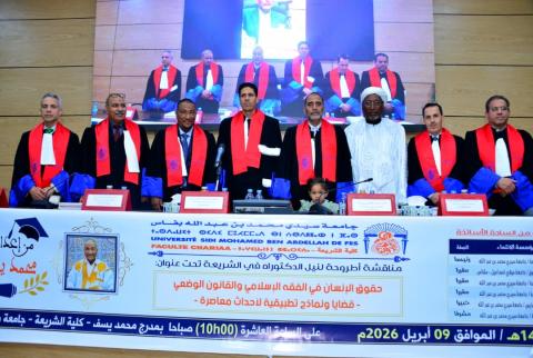 في محفل علمي متميز بجامعة سيدي محمد بن عبد الله بمدينة فاس، ناقش الباحث محمد ينجح دهاه أطروحته لنيل شهادة الدكتوراه في الشريعة بكلية الشريعة، مسجلاً إنجازاً أكاديمياً لافتاً يعزز البحث العلمي في قضايا الحقوق والفقه.